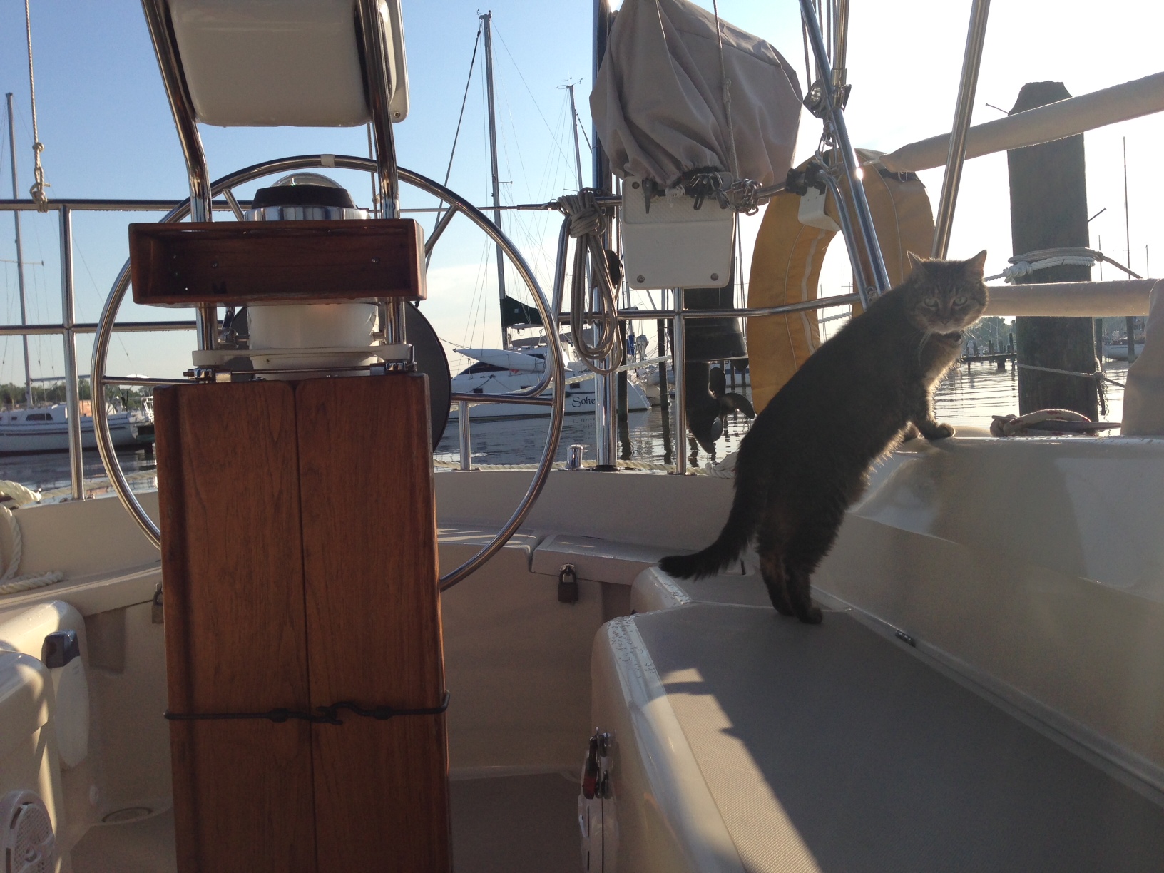 we are on the fence as to what to do with our beloved kitty, leo, when we go cruising.  he’s a little older, he’s kinda’ grumpy, and he’s not good with change…  his cruising ship may have already sailed!  but we love him so, and jr and i decided that no decisions have to be made until final departure plans are set.  until then, you can follow his adventure here :)  we dragged him along with us last weekend for some boat work.  here’s how his weekend went: