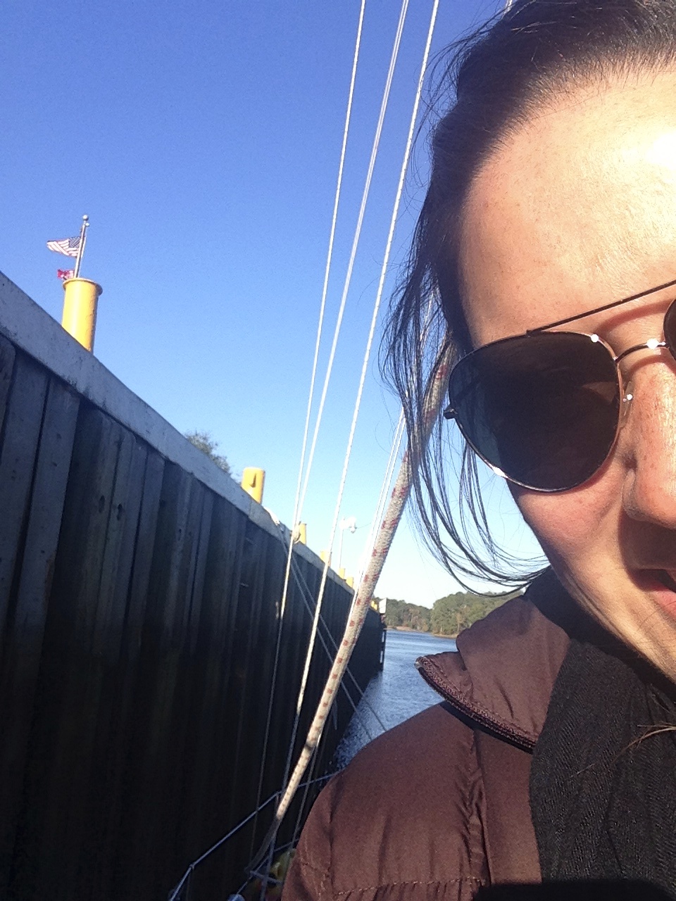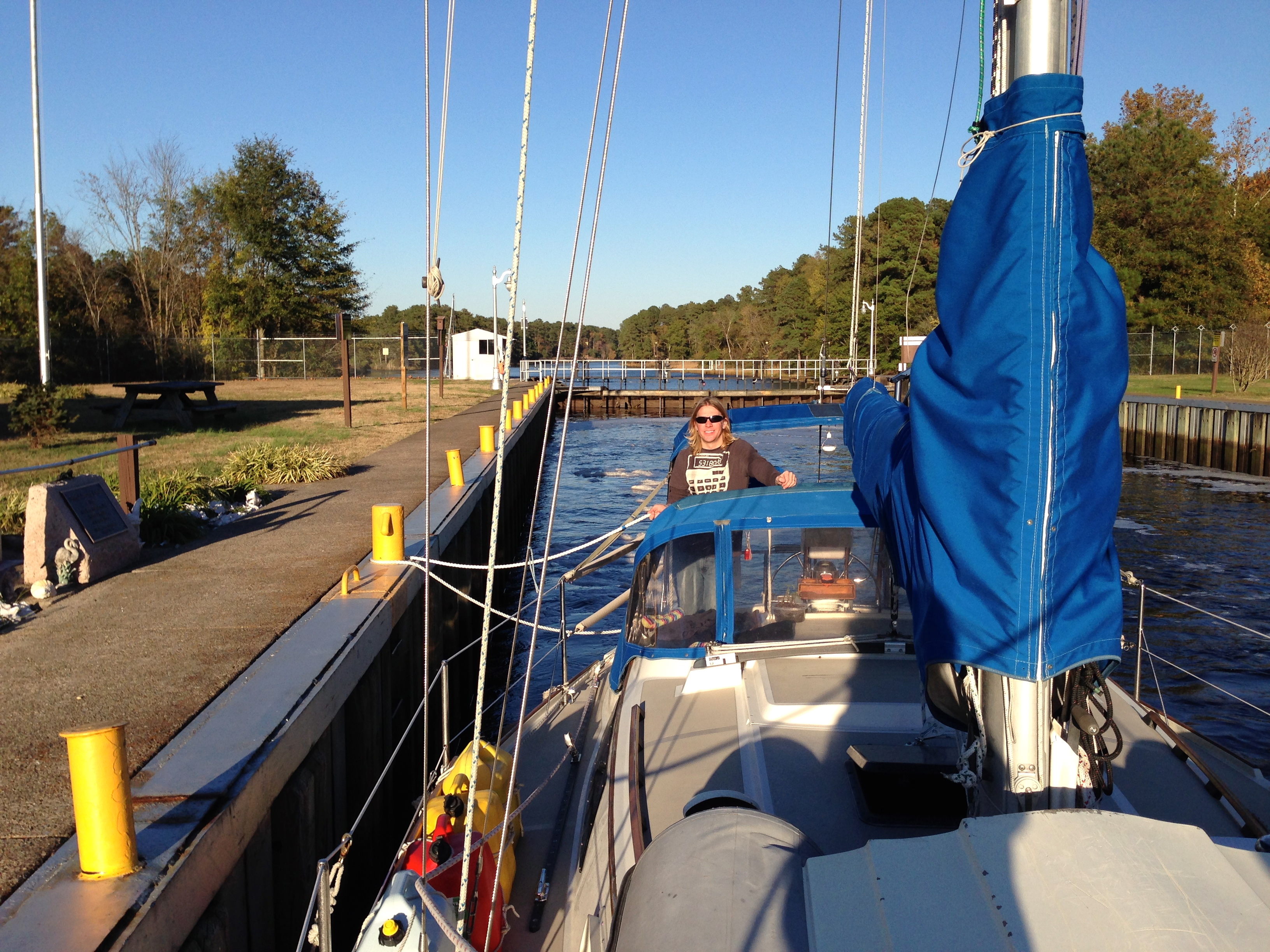 Of course I was worried about the locks and the bridges. I’ve heard lots of stories about bridge guys being grumbly but we had nothing but great experiences. The guys were super friendly and there was no stress whatsoever, except in my head, stress seems to hang out there :) We saw some wildlife on our trip down the swamp: a blue heron and a bald eagle. I really thought there would be more critters like snakes and turtles and such, but no cigar! We did see a squirrel who looked like he was squawking at us, “Get out of my swamp!” It’s also fun to note that Leo made peace with the deck of our boat during our swamp trip. He spent the entire 2 days basking in the sun, enjoying the scenery, and being at one with nature :) He still runs down below at the first feel of waves, but progress has been made! It helps if his (yes, it’s his now) Snuggie is on deck too. He likes the sun/Snuggie combination.