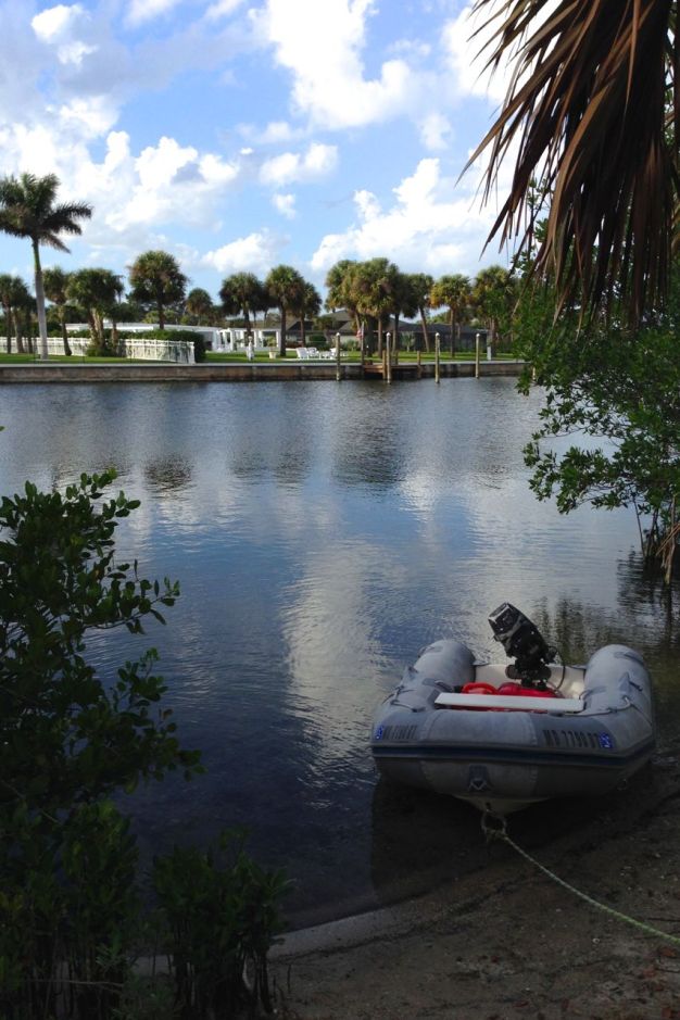 Our dinghy parked near the beach.
