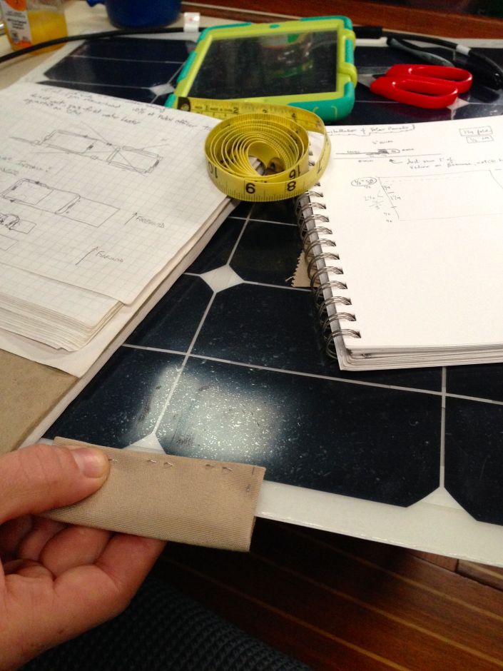 design Next → Our design process. JR is holding the model for the lapel, complete with seam allowances and hems.