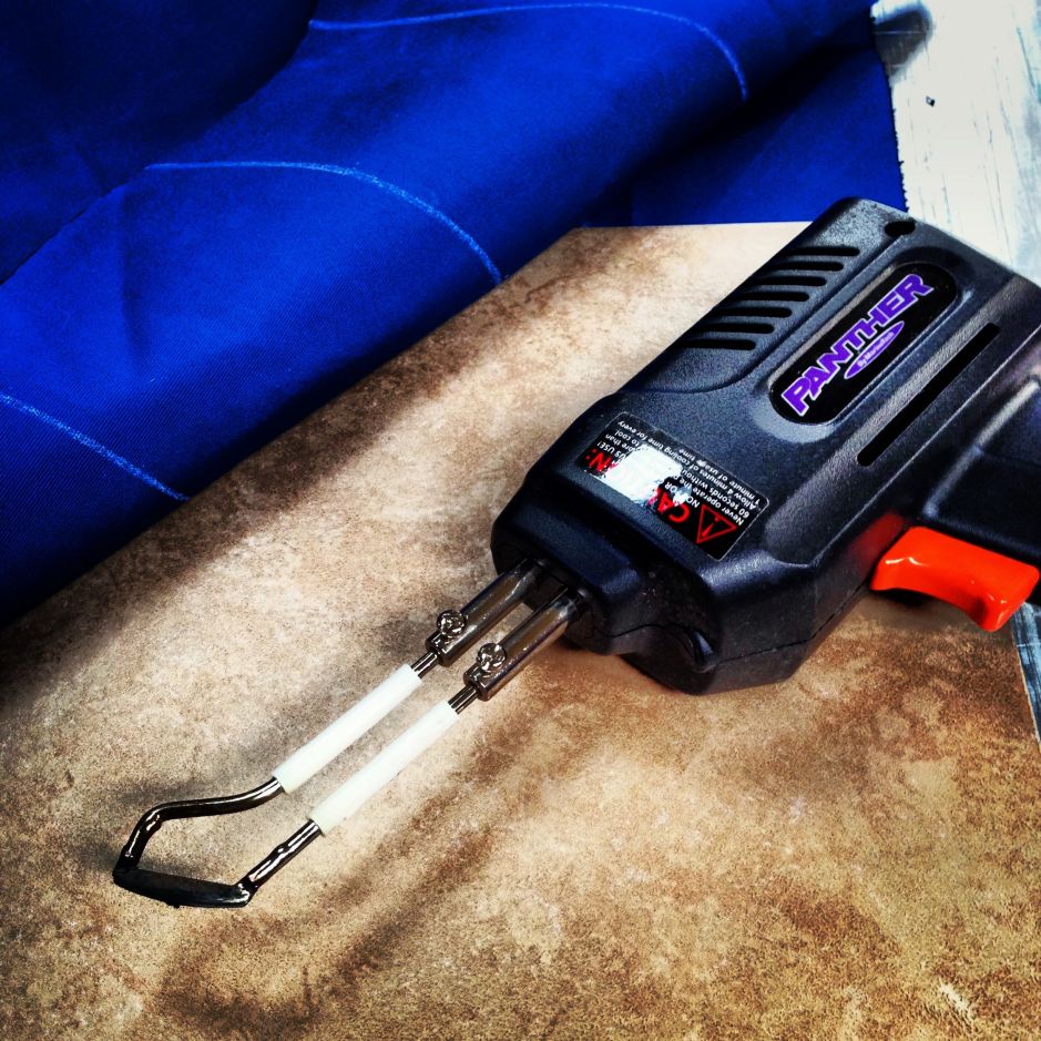 hot knife ← Previous Next → The awesome hot knife (I kinda’ need one) and the canvas all marked up. I used the tile as my straight edge because my only big ruler is plastic! Why do we have a tile on board? That’s another post!