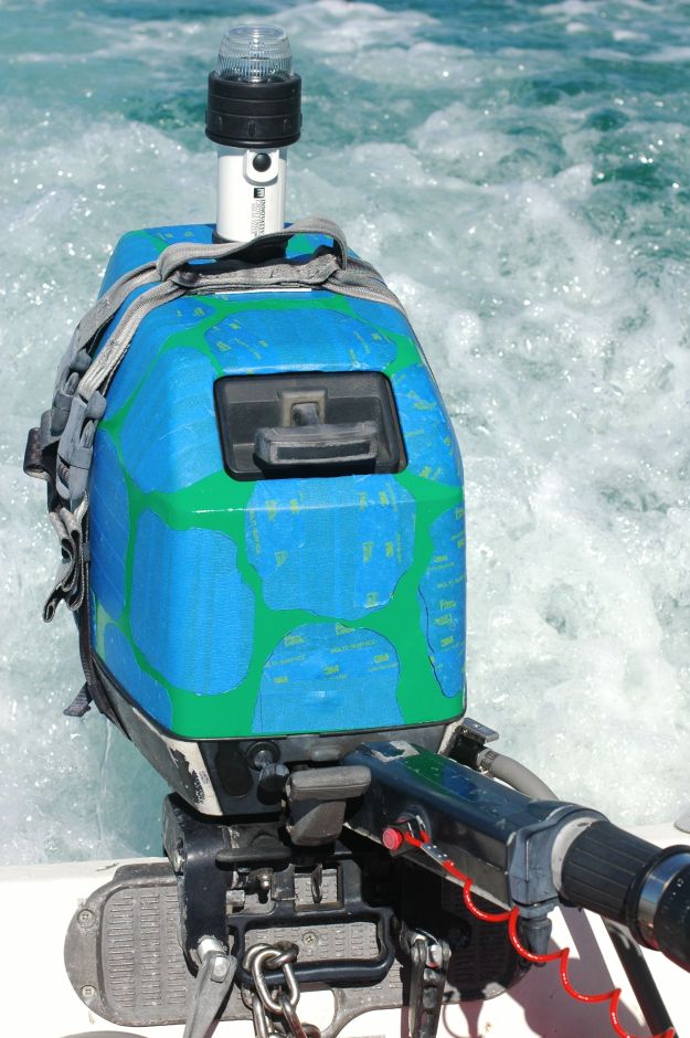 in use ← Previous Next → Here’s our poor motor being used, unfinished, in Miami. There was no where for me to paint and JR said, “No No!” to painting on the boat. Fun police.