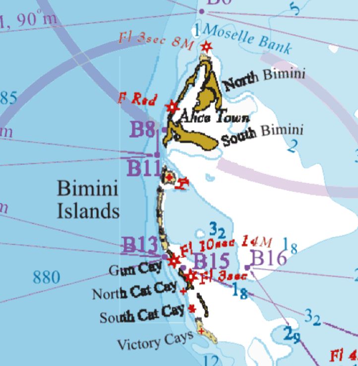 bim map ← Previous Next → These are Bimini Islands. We were tied up in North Bimini, about where the “F Red” star is on the chart.