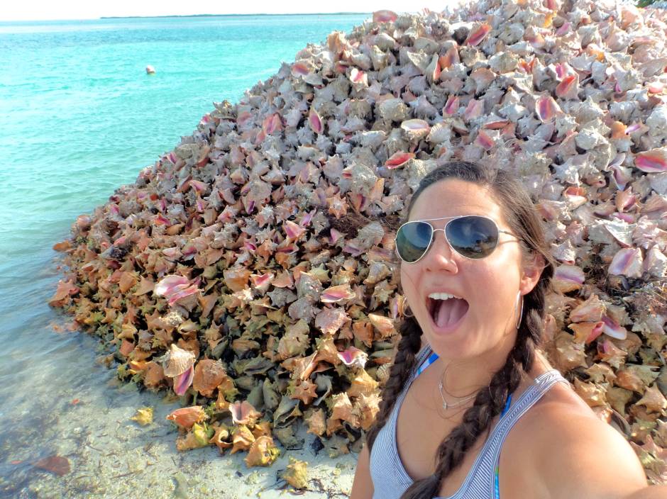 And here’s me, clearly impressed with the giant pile of conch shells.