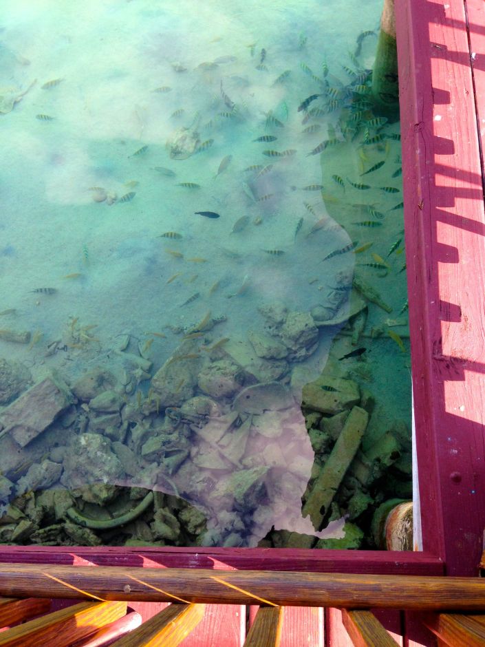 Fishes ← Previous Next → This was the view from Big John’s as I waited for our lunch to be prepared. A million little fishes swimming around.