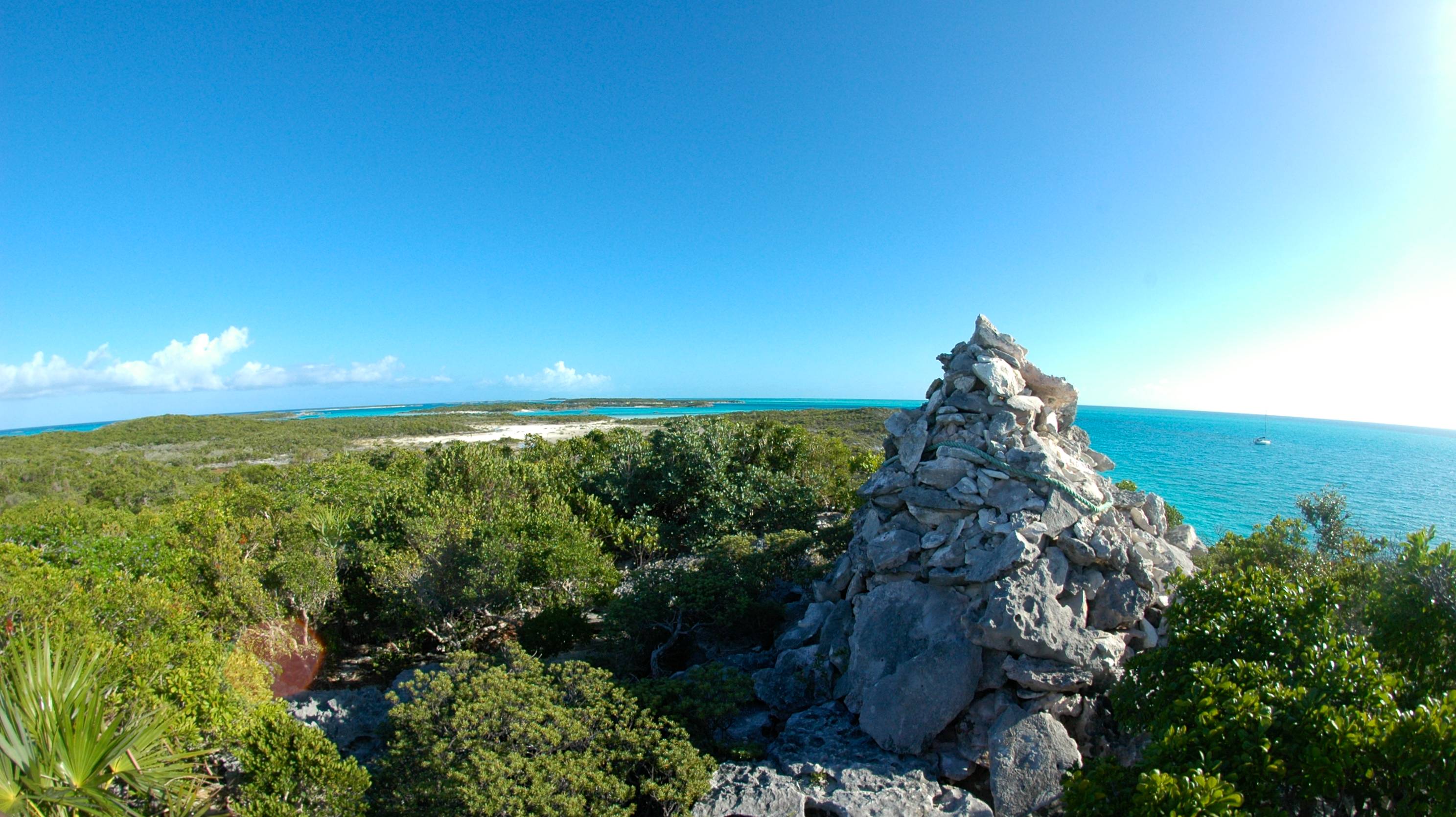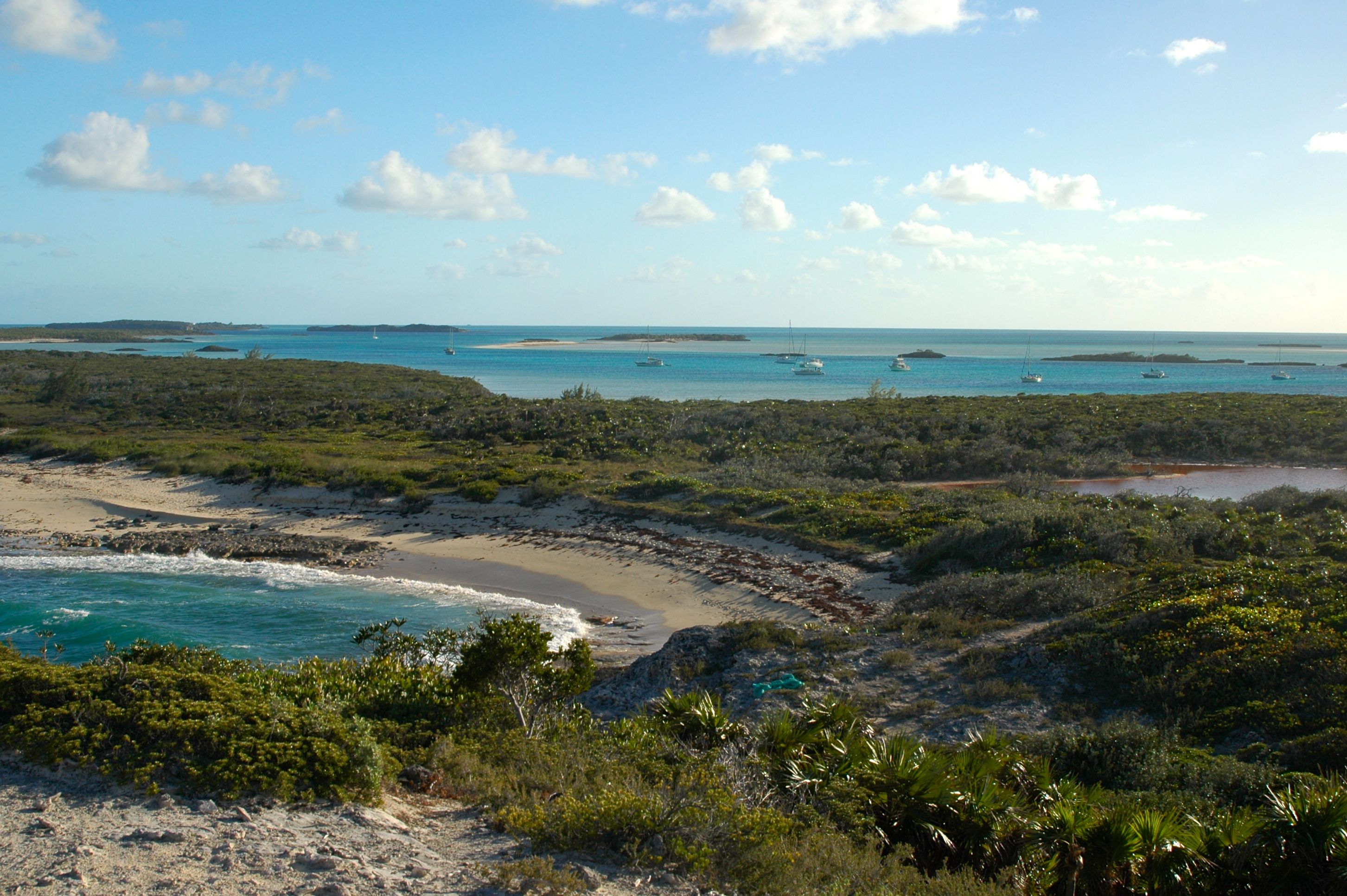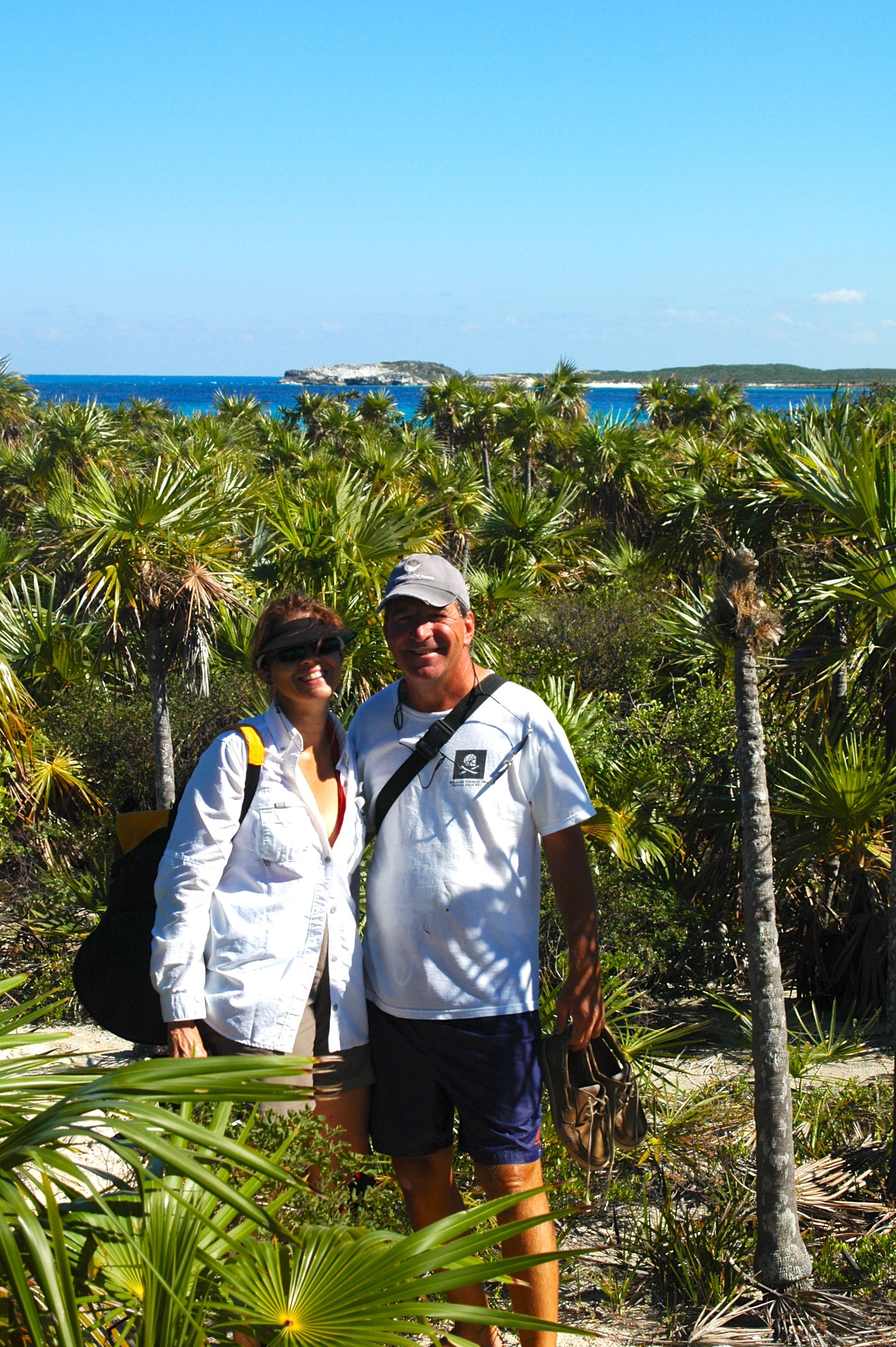 We had a nice sail over from Norman’s Cay and took a mooring at Hawksbill. Moorings throughout the Land and Sea Park are $15 a night and the money supports the Park. We rowed over to the drop box (at Hawksbill, you leave your mooring fee in a drop box) and found a path that takes you to the top of a hill. The view was beautiful!