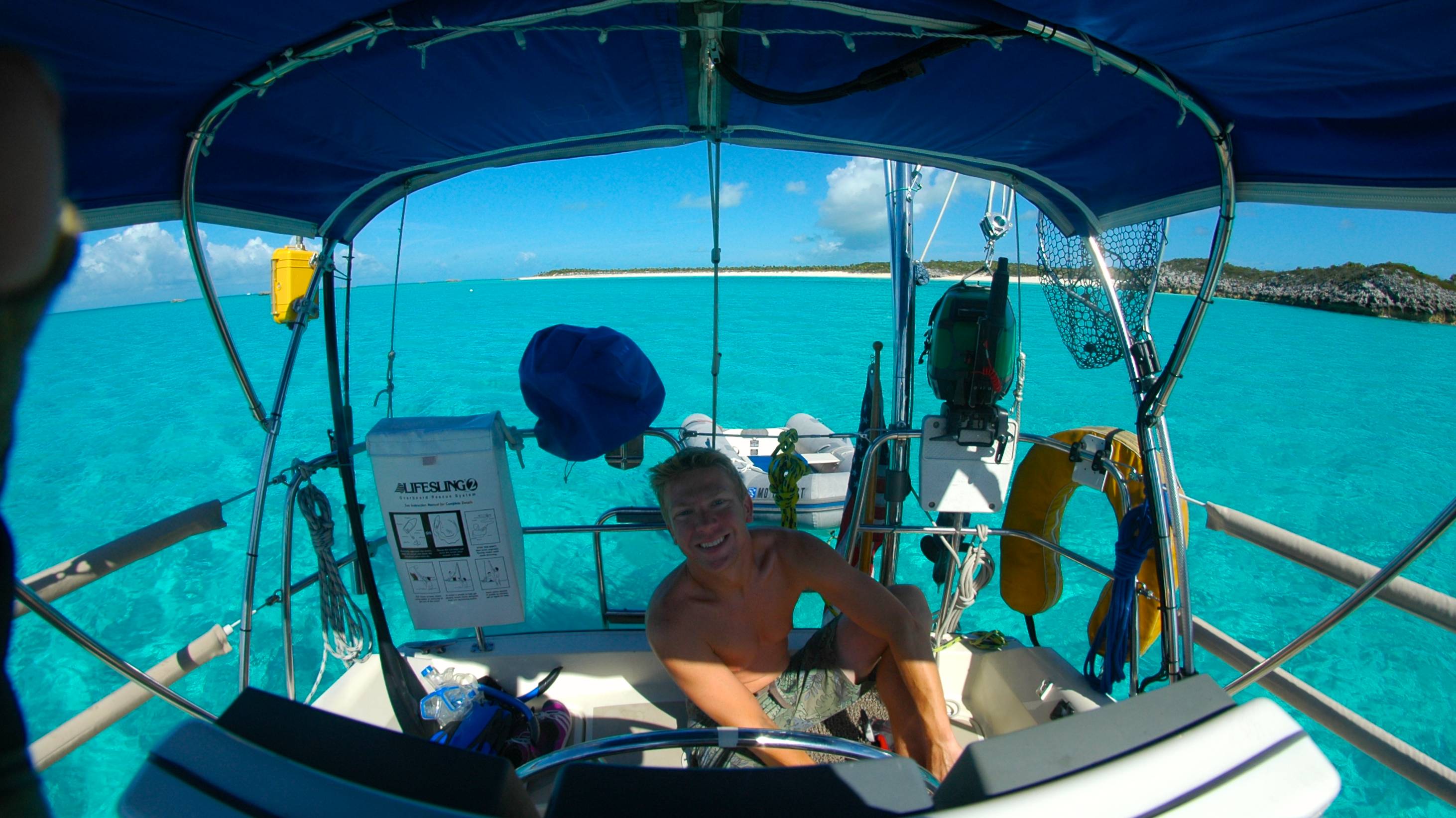 Shortly after we heard from some lovely folks we had met back in Bimini. They were moored in Warderick Wells too and invited us to dinner on their boat. We thought it was a nice thing to do to celebrate JR’s birthday, so we headed over to Dare II for a yummy BBQ dinner that Whitney had canned before they left Pensacola, FL in January! Their boat is super interesting as it is not a cruising boat at all, it’s a racing tri-maran. Their living space is more like a tiny studio apartment, and they don’t have refrigeration! But, they are happy as can be and love their boat so much! Check out the deets here, they charter it during the summer season. Anyway, we had dinner, drinks and then chowed down on Chips-A-Hoy and Oreos for dessert :) I was gonna make a cake but we were out of eggs and it was too hot that day. Saaaawee Jake <3