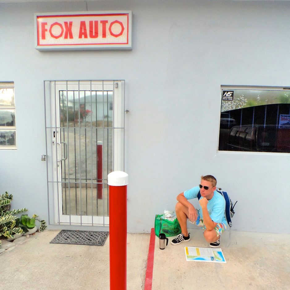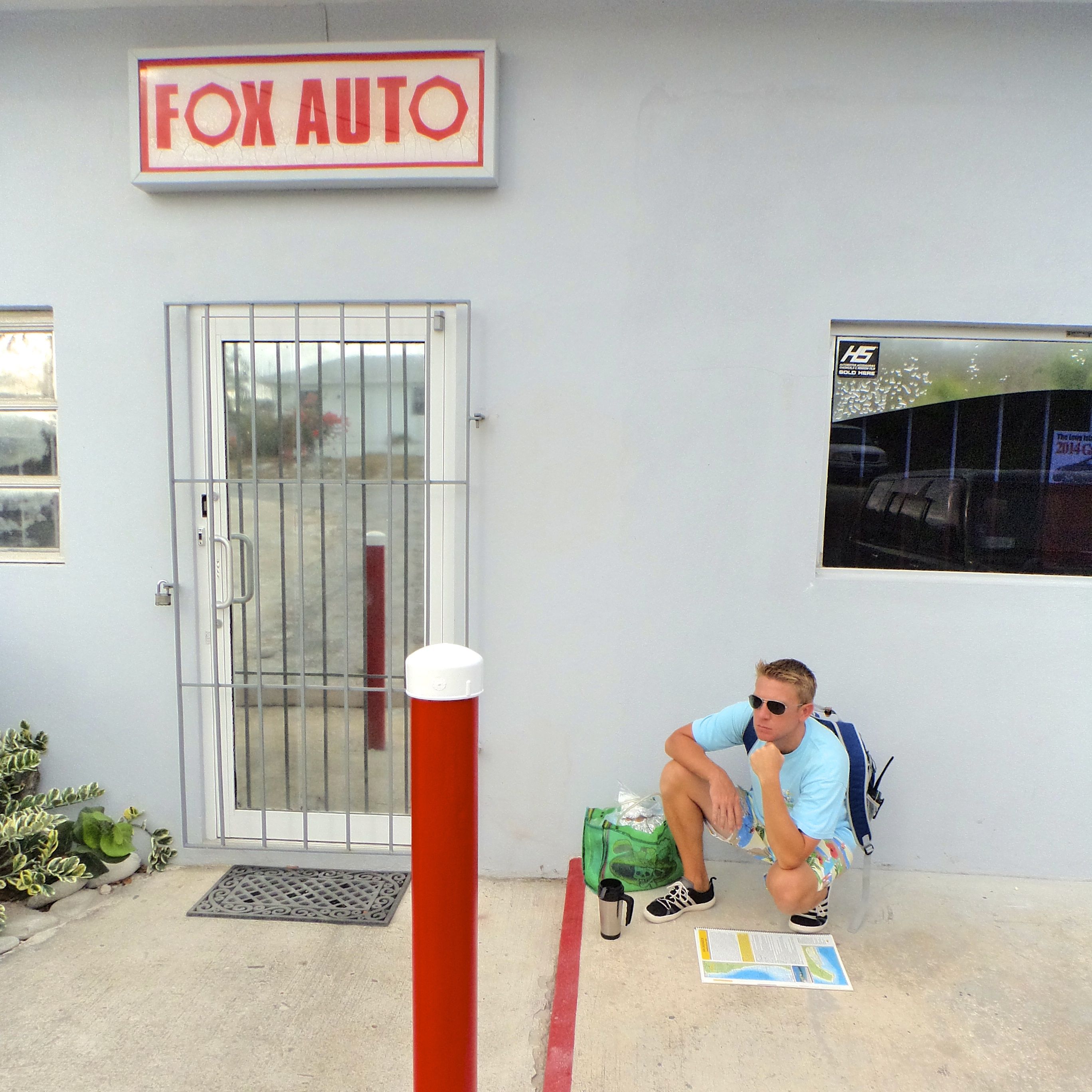 JR, patiently waiting for Mr. Fox to bring us our car.