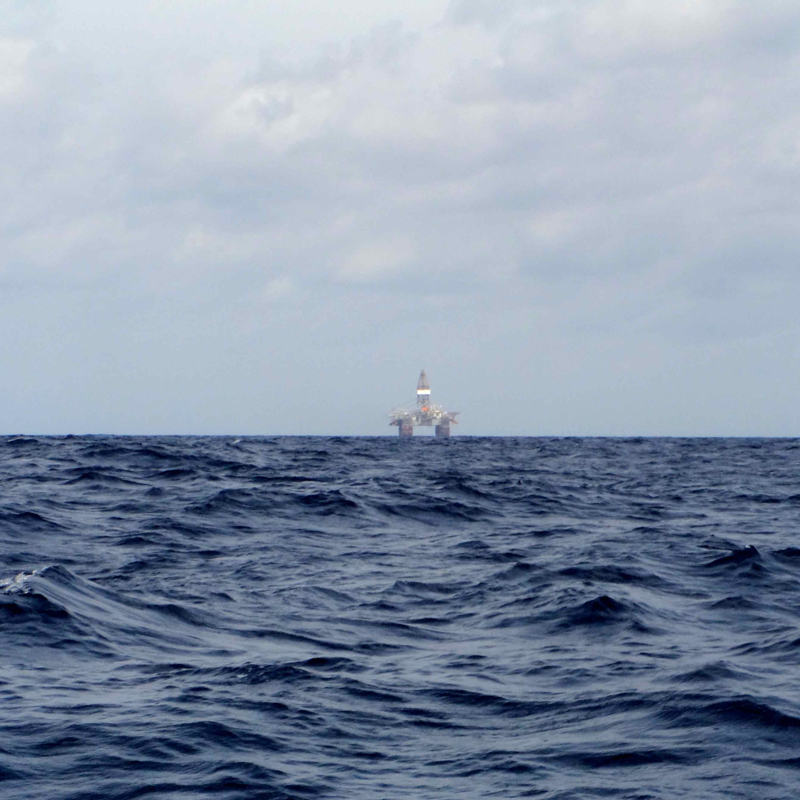We made it off the Great Bahama Bank and into the deep water of the ocean at about 5am. It was still dark, but not for very long. The waves in the Gulf Stream were larger than on the Bank, steady 5 footers, but they had a pretty long interval so it was about the same level of comfort as we had had all night. We were able to keep the boat on the same heading all morning and into the afternoon, pointing south of Ft. Lauderdale and letting the Gulf Stream push us north, and only had to change course slightly once for a tug towing an oil rig (that was cool.) We definitely did not want to be in his way!