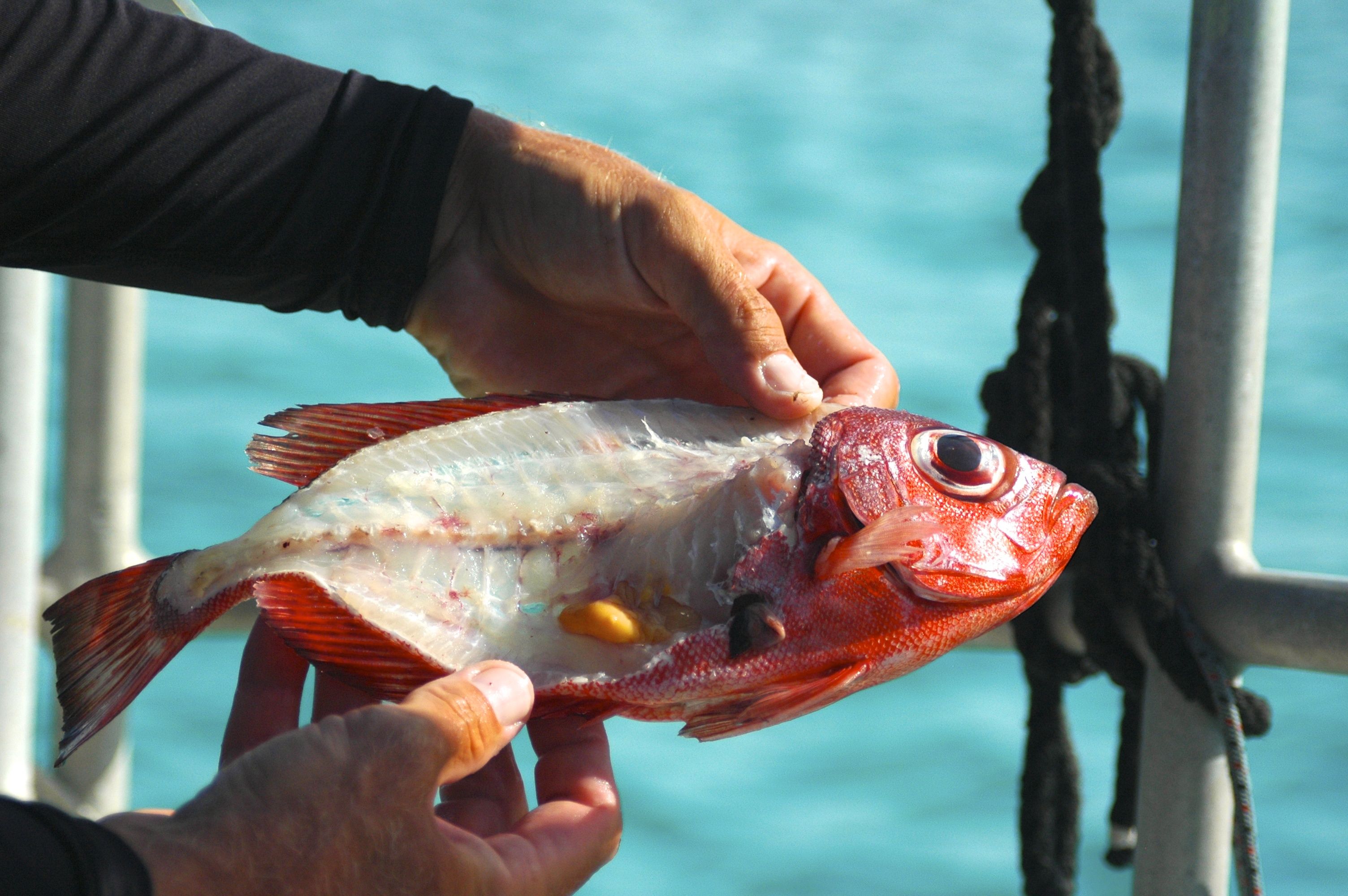So this little fish was INSIDE the belly of the big Lionfish! What!? Fishing lesson, fileting lesson, and a science lesson. Anthyllide should have charged us for this day!
