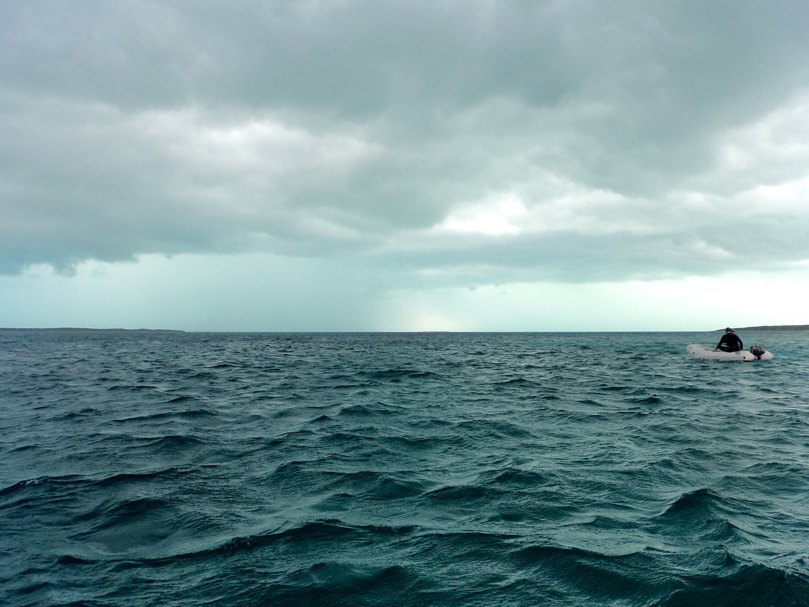 Although we didn’t entirely plan on leaving George Town with Anthyllide, the stars aligned and we ended up in Rat Cay together.  We attempted to snorkel and fish a reef there, but the sky turned ominous fast and we jetted back to our boats to batten down the hatches!