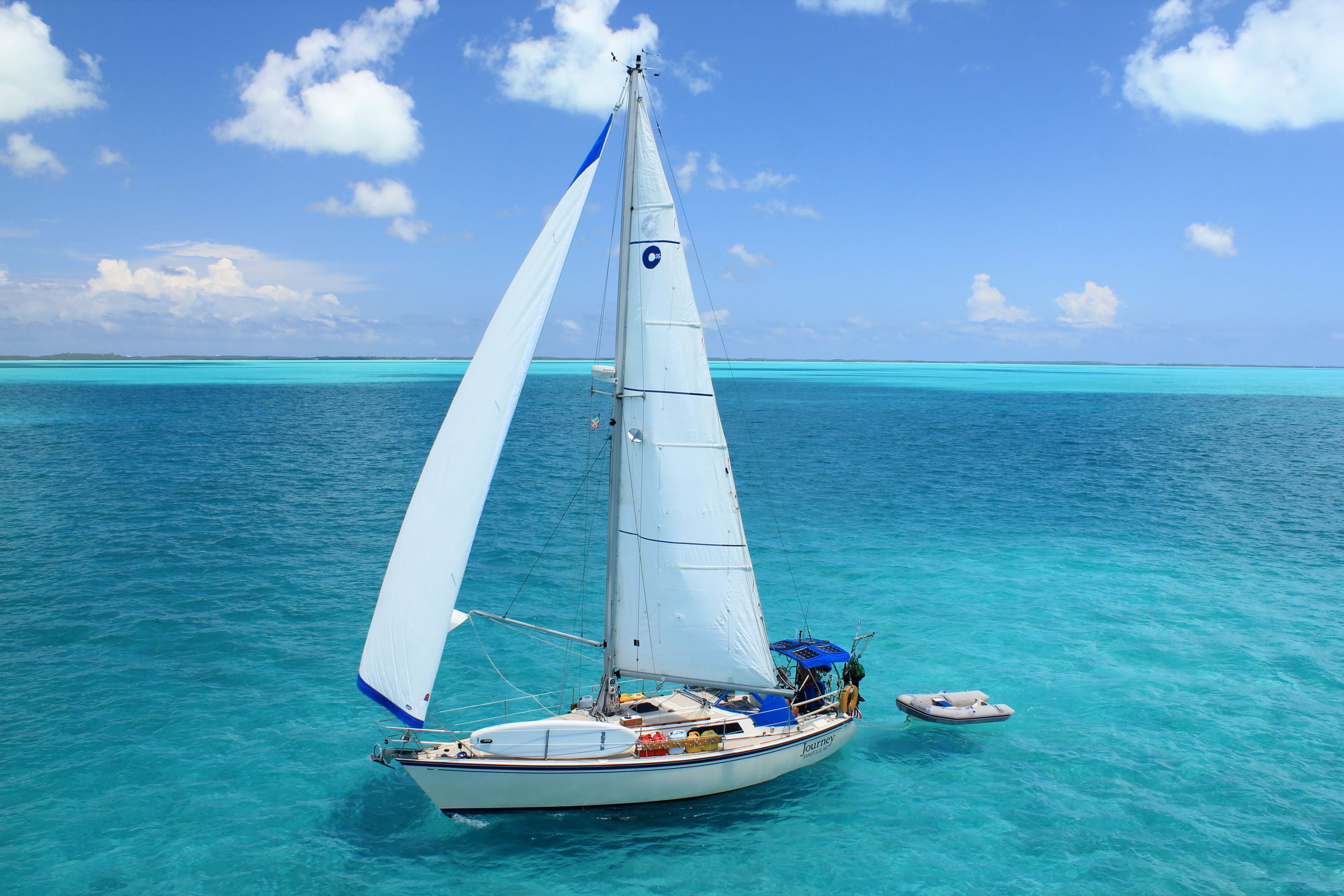 - Journey is a 1986 O’day 35. She was very well maintained by her previous owners and has been really good to us so far. She is 35′ LOA, has 11′ 3″ beam, and shoal draft fin keel with 4′ 5″ draft out of the factory. The previous owners raised her waterline 4″ for when she is loaded up, so technically there is 4′ 9″ worth of bottom paint now. They also replaced many of her original systems including the standing rigging. The spars, hull and deck, and engine are just about the only original components remaining now that we have replaced the rudder. The engine is a 21 hp Universal M-25 that had around 2,700 hours when we bought her. We hesitated to buy a boat with an engine almost 30 years old, but the hours are low considering the age and we were told most of them were cruising hours with good regular maintenance intervals. Journey has been to the Bahamas twice already, hopefully she’ll show us the way! Some of the features that we love about Journey that make her unique from some of the other O’day 35s are the electric windlass, direct-vented propane cabin heater, upgraded batteries and electrical system, and electronic instruments and tank gauges. Thanks David and Peg!
