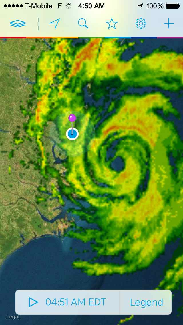 The radar at 4:51 am.  We are the little blue dot.