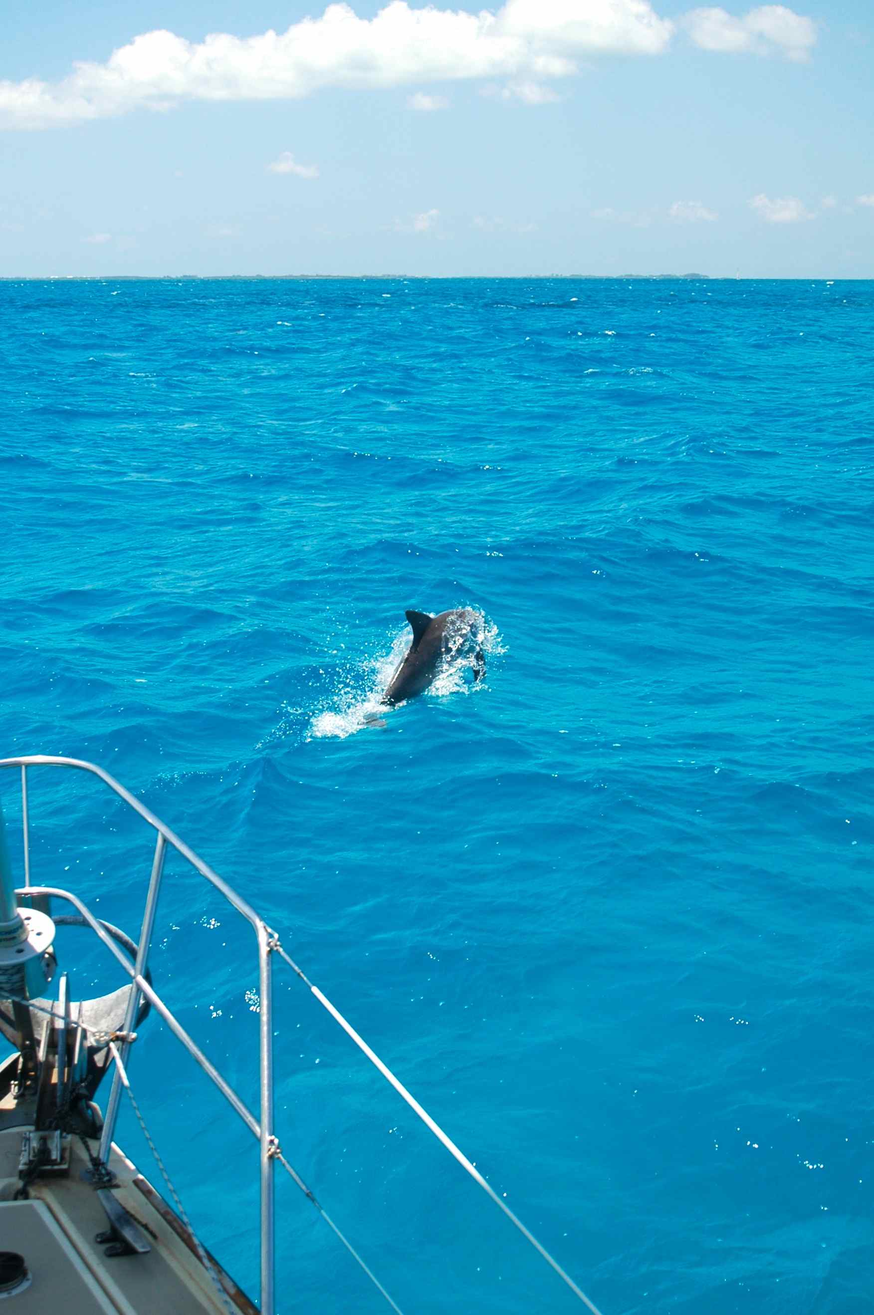 Although we were not thrilled about heading back to Nassau, it was the next logical stop. We had the pleasure of being escorted part of the way by this little guy, who spent about 10 minutes racing back and forth in front of our boat.