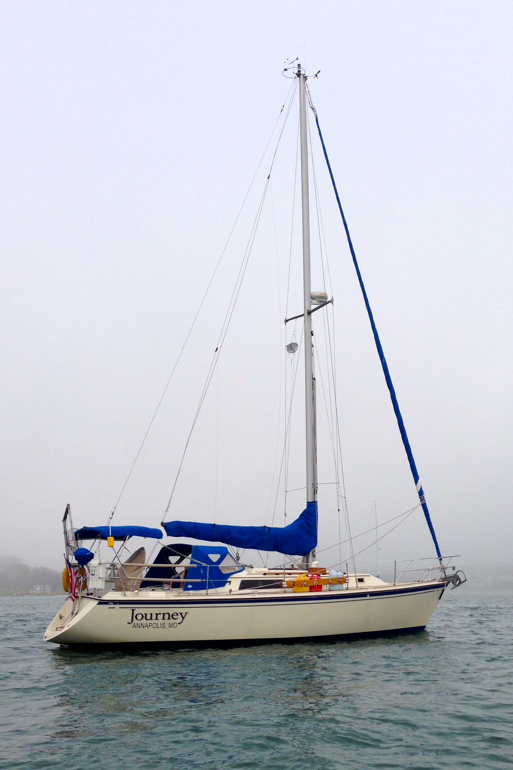 The next day was foooooooogy! Here’s Journey on her mooring as we went to town to meet some friends!