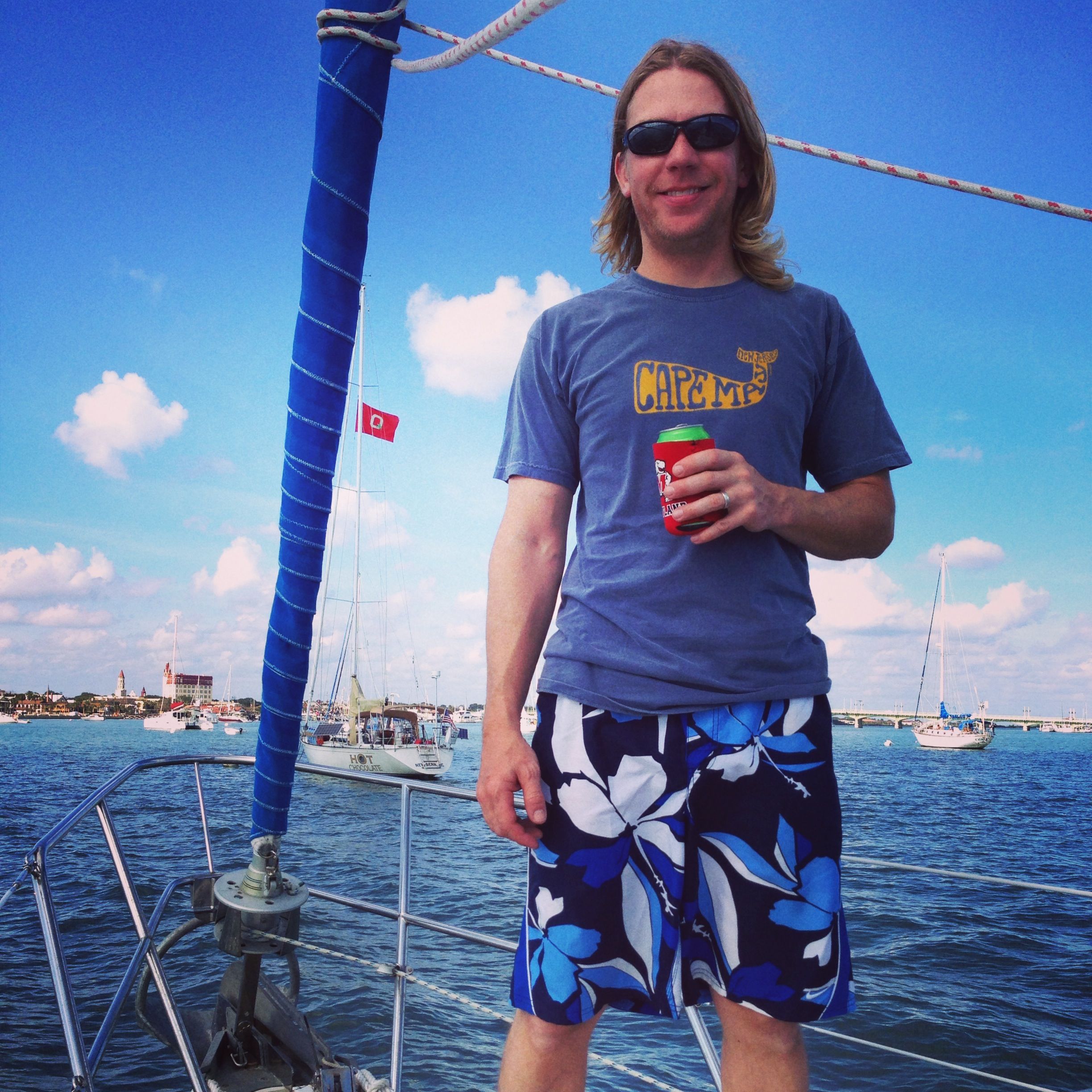 Friday night, we chose an anchorage that was about 12 miles short of St. Augustine, setting ourselves up for an easy day on Saturday. We woke up when we felt like it, ate breakfast with both hands (not underway!), and, at no particular time, upped the anchor and motored for about 2 hours to our destination. The weather was BEAUTIFUL and the sky was such a bright blue.
